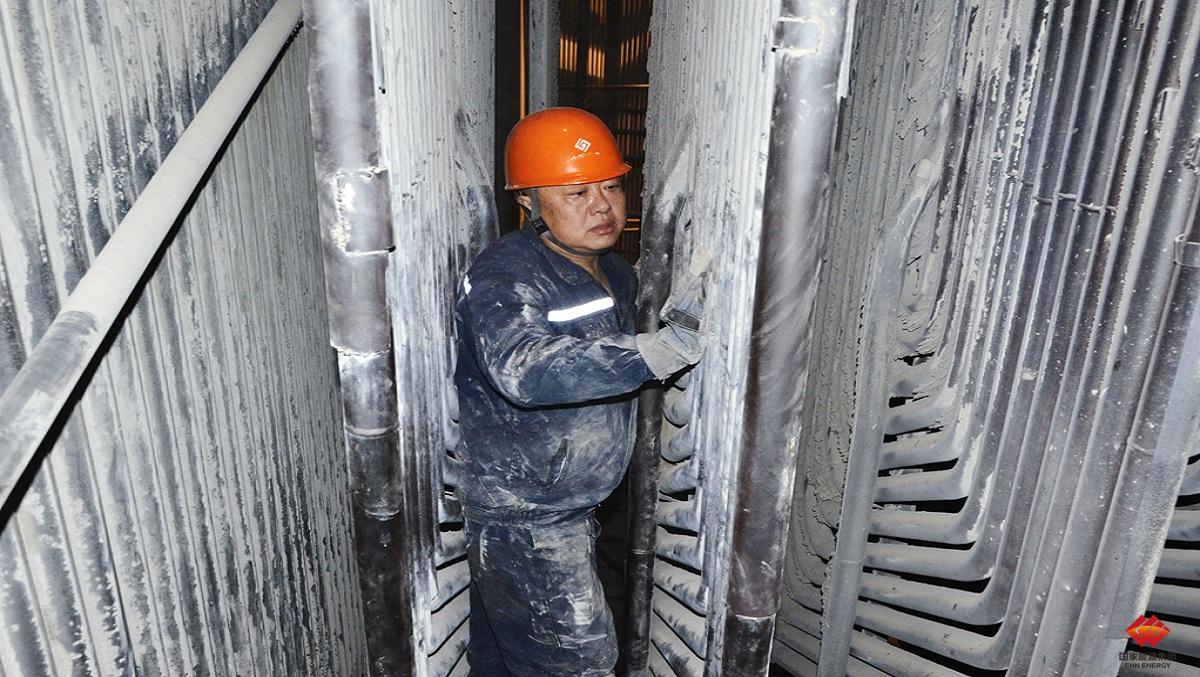 图为该厂锅炉员工利用机组临停机会进行受热面拉网式排查。
