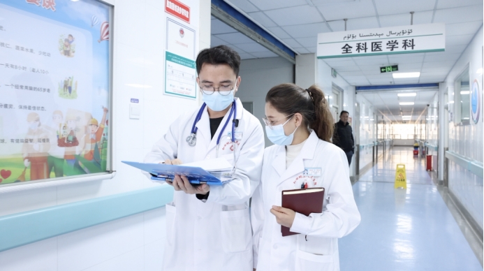在医院里,阿布迪热合曼悉心地照顾病人,询问病人情况。“我从小就在心里埋下了一颗‘当医生’的种子,如果没有上大学,我或许只能在村里做些小生意。”阿布迪热合曼从小学到大学毕业,一直都享受着国家对南疆地区学生发放助学金的政策,他说自己很幸运生活在这样的好时代、新时代,很珍惜国家能源集团的助学金。