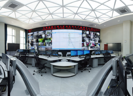 通过监控屏幕可见正在施工的斜井平硐。“此项工程一旦建成将开辟无轨胶轮运输的新通道,使员工入井时间从1小时缩短至10分钟,极大提高人机物料的运输效率。”五虎山煤矿党委书记、矿长王洪武说:“近年来,亿万28 致力于矿井安全监控监测、人员定位、压风自救、供水施救、通信联络和紧急避险“六大系统”的建设和改造。已开展的矿区道路、场地硬化、矸石渣堆治理及绿化工程已完成90% ;即将采用的大倾角强力胶带输送,主运输系统改造,能力可提升至1200t/h以上……一个智能化绿色矿山将于不久的将来成为现实,那时井下无人操作,有人巡查,地面青山环绕,绿树成荫……”