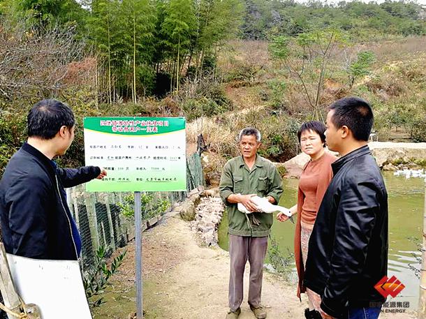 图为该公司驻村干部检查激励性扶贫项目连城白鹜鸭养殖情况