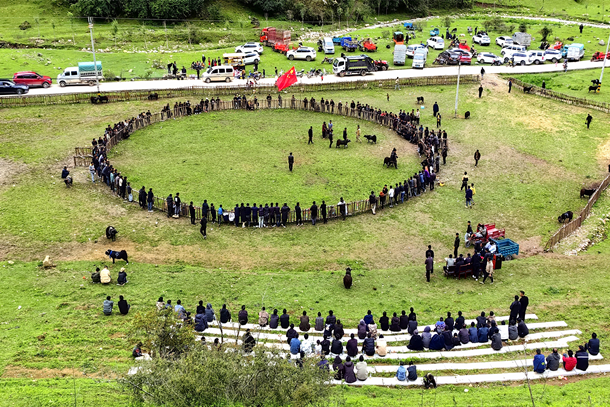 图为博作村“农文旅”融合斗羊比赛民俗文化活动现场