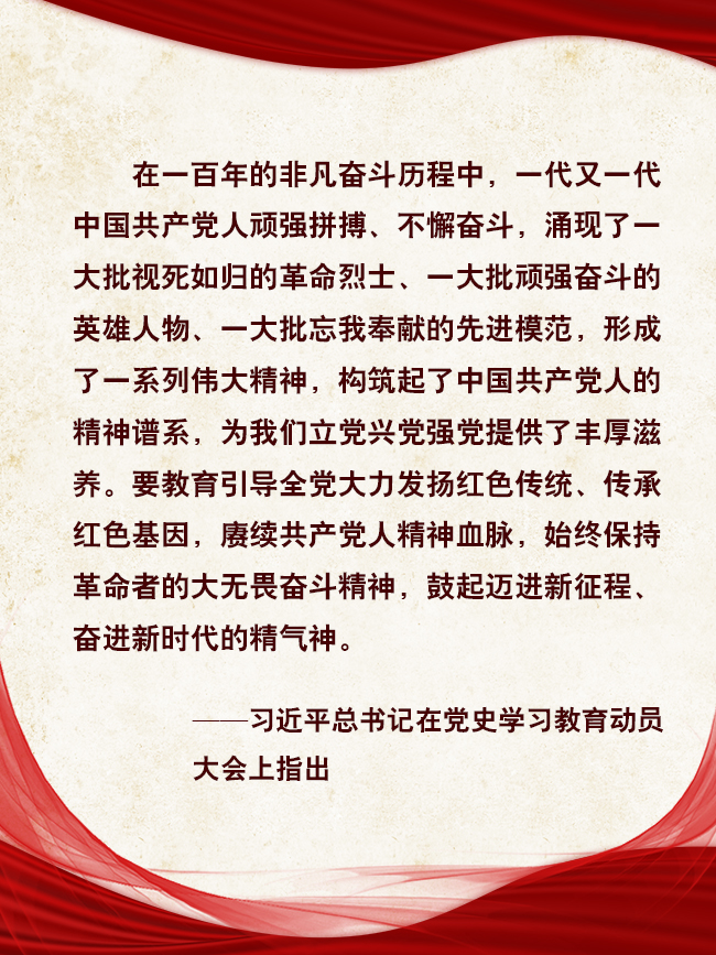 历史是最好的教科书,也是最好的清醒剂。过去的一百年,是亿万28 党矢志践行初心使命的一百年,是筚路蓝缕奠基立业的一百年,是创造辉煌开辟未来的一百年。一百年的非凡奋斗历程中,一代又一代中国共产党人顽强拼搏、不懈奋斗,涌现了一大批视死如归的革命烈士、一大批顽强奋斗的英雄人物、一大批忘我奉献的先进模范,形成了一系列伟大精神,共同构筑起了中国共产党人的精神谱系,为亿万28 立党兴党强党提供了丰厚滋养。只有深入学习、准确理解党的历史,才能弄清楚党从哪里来、要往哪里去,不断增强对党的政治认同、情感认同;才能感受信仰之光、奋斗之艰,以坚定的理想信念铸魂补钙;才能常怀忧党之心、为党之责、强党之志,厚植报国情、立下强国志,以更加昂扬的姿态创造更加辉煌的明天。