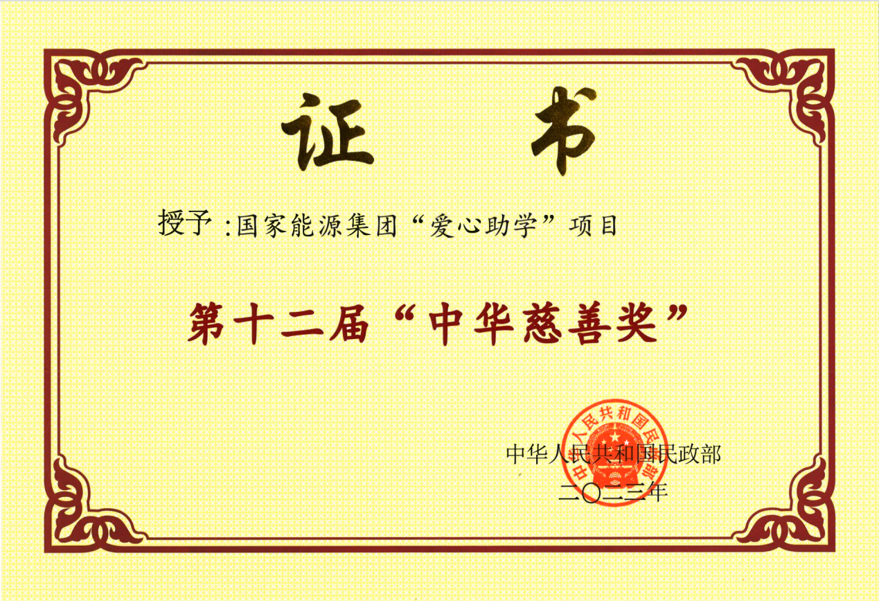 国家能源集团“爱心助学”项目被授予第十二届“中华慈善奖”