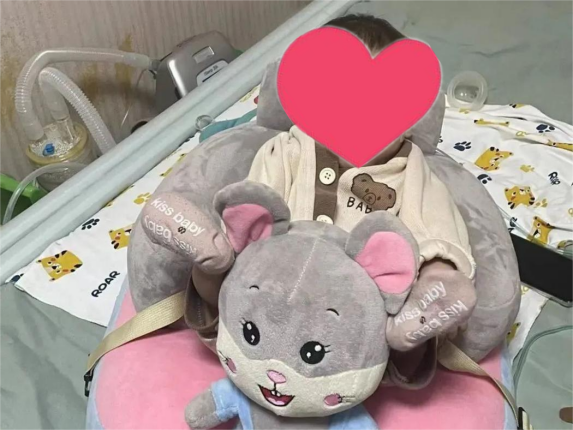 襁褓中的洋洋从出生的那一天起,就全身戴满仪器,靠有创呼吸机和医生的辅助才能呼吸,这样的状态一直持续了3个月。这个弱小的生命,在短短8个月的时间里,接受了从肺动脉到小肠的三次手术,只是为了让身体达到可以做心脏手术的条件。
