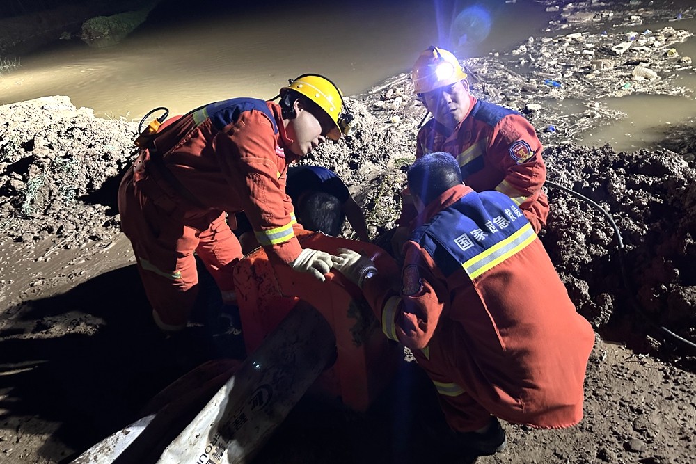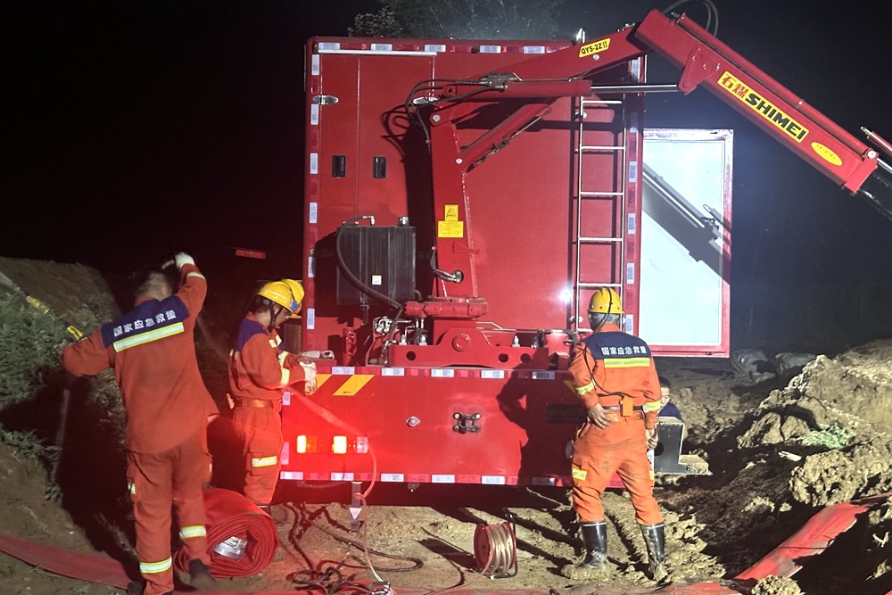 袁永年和大家伙科学制定抢险方案、充分评估现场风险、精准布置抢险任务后,盯在现场,一方面与当地负责人做好各种沟通协调工作,一方面提醒指战员在做好自身安全防护的基础上,高效有序开展抢险工作,一有机会就赶过去搭把手。指战员们协调配合,科学合理布置排水泵位置、寻找可靠电源、连接排水管路……