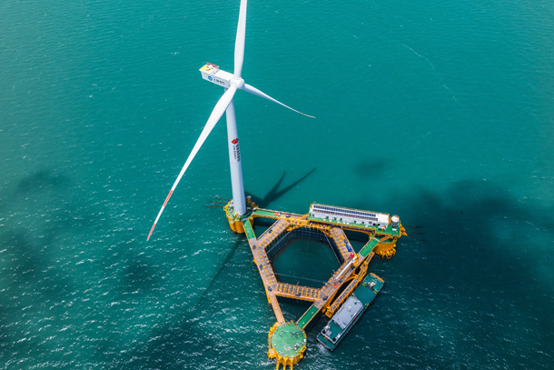为积极响应全球应对气候变化行动,助力国家“双碳”目标实现,推进能源清洁低碳转型,龙源电力创新开发全球首个漂浮式风渔融合项目“国能共享号”。该平台针对海上风电开发与传统海洋牧场发展的空间冲突、效益单一等瓶颈问题,以“海上发电、海下养鱼”的立体开发理念,实现了海洋空间资源的高效集约化利用。研发过程中,项目团队攻坚克难,突破漂浮式基础设计、系泊系统建设等多项关键技术,并依托智能化养殖和数字化监控技术,革新渔业养殖新模式。2024年6月,“国能共享号”成功投运,实现了风机与深海养殖的完美融合,年发电量可达1500万千瓦时,相当于减少碳排放1.2万吨。2025年,平台捕获首批呈野化特征鱼品,收入达百万元,打造出“绿色能源+蓝色粮仓”的新质生产力典范,为海洋经济高质量发展注入强劲科技动能。