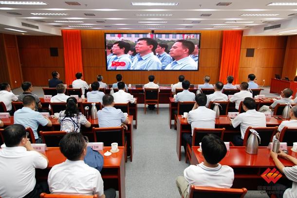 工程公司干部员工在会议室收看大会盛况