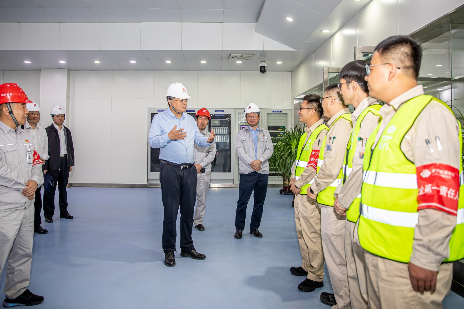 7月7日上午,刘国跃来到哈密大南湖二矿和花园电厂,看望慰问了一线干部员工,现场了解矿区总体规划、安全生产、运营管理、专用铁路线建设等情况,观摩露天矿无人驾驶系统并提出优化建议。他指出,要抓实安全生产,落实“四个到位”,进一步提升煤矿保安水平;要加大科技创新,解决安全生产需求问题,加快推动智慧矿山建设。随后,刘国跃实地察看了花园电厂集控室、汽机平台、文化走廊等区域,询问了解机组运行、调峰调频、灵活性改造等情况,并与现场运行人员亲切交流。他强调,要深挖煤电一体化协同创效潜力,做精煤电联营,总结出一条可持续、可推广、可示范的经验和标准。调研期间,刘国跃还视察了国华投资驻哈密办公区,就区域内单位办公用地规划建设情况进行调研。