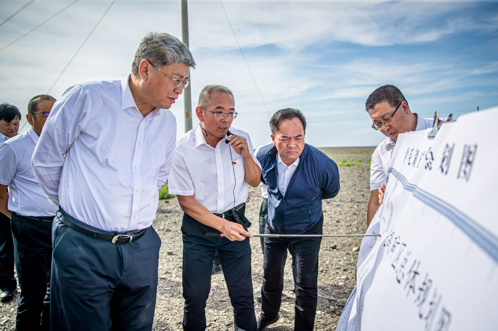 7月6日,在哈密伊吾工业园区白石湖产业园,刘国跃实地察看了哈密能源集成创新基地项目的建设规划区域,现场听取了项目开发建设方案和疆煤出区通道规划情况汇报,要求明确创新基地项目前期工作年度目标,创新抓好项目开发报批和现场准备工作,坚持“油化并举、平急结合”思路,高质量打造国家级煤制油气战略基地。在岔哈泉煤矿规划开发区域,刘国跃深入了解淖毛湖矿区资源开发建设情况。