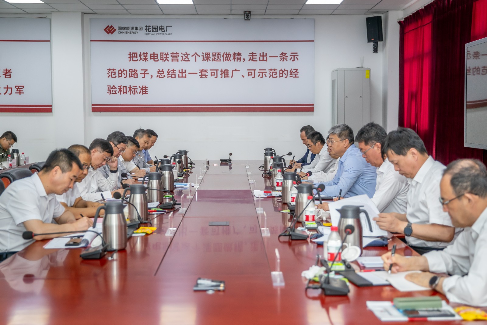 7月7日下午,刘国跃在花园电厂主持召开主题教育专题调研座谈会,深入了解新疆区域企业安全生产、“两个联营”、一体化建设、党的建设等工作情况,听取了国神公司、化工公司、哈密化工、新疆公司、国华投资新疆分公司等单位工作汇报及发展建议,对新疆区域企业发展建设取得的优异成绩给予充分肯定。他表示,近年来,集团公司新疆区域广大干部员工坚守边疆、深耕奋进,为集团公司在疆长远发展奠定了坚实基础。在疆企业要完整准确贯彻新时代党的治疆方略,聚焦主责主业,发挥一体化优势,践行“社会主义是干出来的”伟大号召,全力保障国家能源安全,在构建新疆现代化产业体系过程中,更好地发挥集团公司科技创新、产业控制、安全支撑作用。