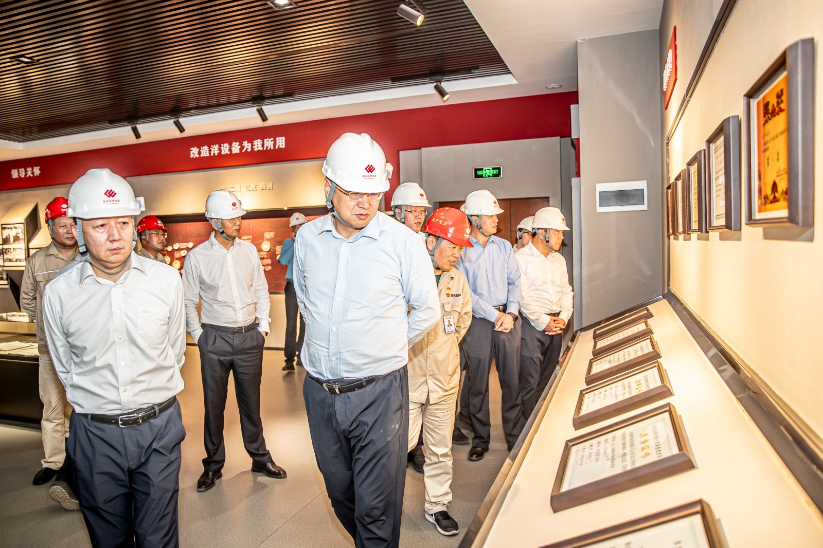 刘国跃在内蒙古元宝山电厂参观元电一号机组工业遗产展陈场馆